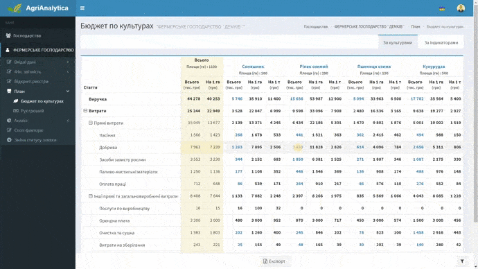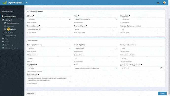All our partners receive requests for financing through the Agrarian Cabinet. To facilitate your quick loan decision, we have developed an online tool Agri: Credit analysis, which includes legal, financial and economic analysis of the Grower-applicant, as well as a complete analysis of the land bank. Agri: Credit analysis will help you more accurately assess risks and take minimal time to make a credit decisions, increase the agri-loan portfolio and improve its quality.